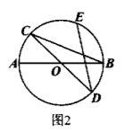 如图 2, $A B, C D$ 是 $\odot O$ 的两条直径, $E$ 是劣弧 $\widehat{B C}$ 的中点, 连接 $B C$, $D E$. 若 $\angle A B C=22^{\circ}$, 则 $\angle C D E$ 的度数为