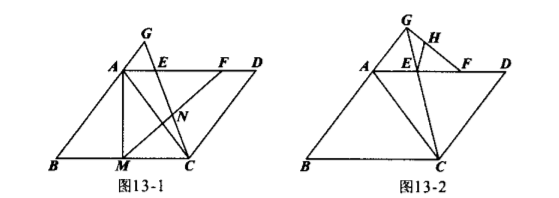 (1) 如图 13-1, $M$ 是 $B C$ 边上一点, 连接 $A M, M F, M F$ 与 $C E$ 相交于点 $N$.