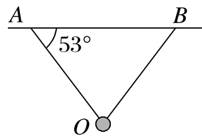 如图所示,两等长轻绳一端打结,记为O点,并系在小球上.两轻绳的另一端分别系在同一水平杆上的A、B两点,两轻绳与固定的水平杆夹角均为53°.给小球垂直纸面的速度,使小球在垂直纸面的竖直面内做往复运动.某次小球运动到最低点时,轻绳OB从O点断开,小球恰好做匀速圆周运动.已知sin 53°=0.8,cos 53°=0.6,则轻绳OB断开前后瞬间,轻绳OA的张力之比为