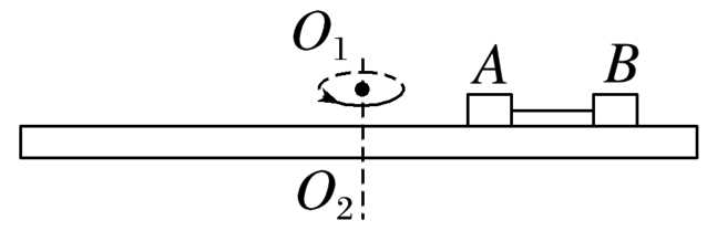 如图所示,两个可视为质点的、相同的木块A和B放在转盘上,两者用长为L的水平细绳连接,木块与转盘间的最大静摩擦力均为各自重力的K倍,A放在距离转轴L处,整个装置能绕通过转盘中心的转轴O1O2转动,开始时,绳恰好伸直但无弹力,现让该装置从静止开始转动,使角速度缓慢增大,以下说法正确的是(重力加速度为g)