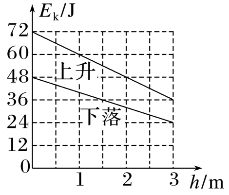 从地面竖直向上抛出一物体,物体在运动过程中除受到重力外,还受到一大小不变、方向始终与运动方向相反的外力作用.距地面高度h在3 m以内时,物体上升、下落过程中动能Ek随h的变化如图所示.重力加速度取10 m/s2.该物体的质量为