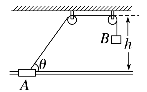 如图所示,物块A套在光滑水平杆上,连接物块A的轻质细线与水平杆间所成夹角为θ=53°,细线跨过同一高度上的两光滑定滑轮与质量相等的物块B相连,定滑轮顶部离水平杆距离为h=0.2 m,现将物块B由静止释放,物块A、B均可视为质点,重力加速度g=10 m/s2,sin 53°=0.8,不计空气阻力,则