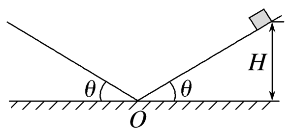 如图所示,两倾角均为θ的光滑斜面对接后固定在水平地面上,O点为斜面的最低点.一个小物块从右侧斜面上高为H处由静止滑下,在两个斜面上做往复运动.小物块每次通过O点时都会有动能损失,损失的动能为小物块当次到达O点时动能的5%.小物块从开始下滑到停止的过程中运动的总路程为