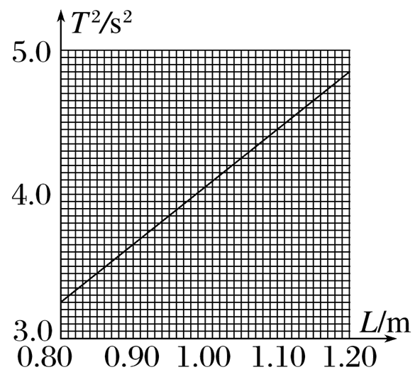 (3)更换摆线长度后,多次测量,根据实验数据,利用计算机作出T2-l图像,并根据图像处理得到方程T2=4.00l+0.037 (s2).由此可以得出当地的重力加速度g= m/s2.(取π2=9.86,结果保留三位有效数字)