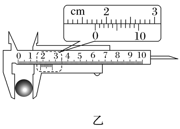 (2)用10分度的游标卡尺测量小球的直径d,测量的示数如图乙所示,读出小球直径的值为 mm.