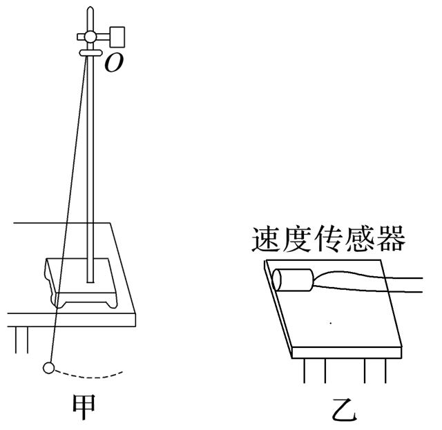 (2)在图甲所示装置的基础上再增加一个速度传感器,如图乙所示,将摆球拉开一小角度使其做简谐运动,速度传感器记录了摆球振动过程中速度随时间变化的关系,如图丙所示的v-t图线.由图丙可知,该单摆的周期T= s;