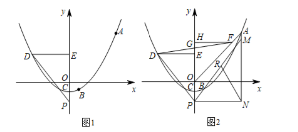 (2) 如图 1, 点 $D$ 在该拋物线上, 点 $D$ 横坐标为 $-2$, 过点 $D$ 向 $y$ 轴作垂线, 垂足为点 $E$. 点 $P$ 为 $y$ 轴 负半轴上的一个动点, 连接 $D P$ 、设点 $P$ 的纵坐标为 $t, \triangle D E P$ 的面积为 $S$, 求 $S$ 关于 $t$ 的函数解析式 (不 要求写出自变量 $t$ 的取值范围);