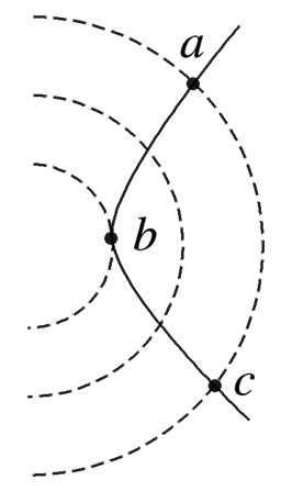 一个带电粒子(不计重力)射入一点电荷的电场中,粒子运动的轨迹如图实线abc所示,图中虚线是同心圆弧,表示电场中的等势面,下列判断正确的是