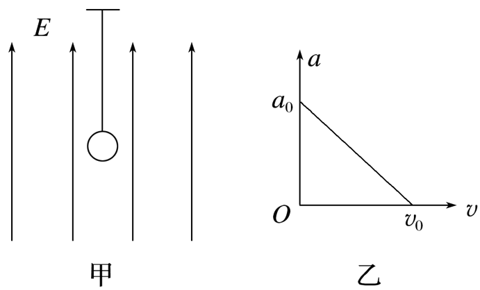 .如图甲所示,一带正电的小球用绝缘细线悬挂在竖直向上的、范围足够大的匀强电场中,某时刻剪断细线,小球开始向下运动,通过传感器得到小球的加速度随下行速度变化的图像如图乙所示.已知小球质量为m,重力加速度为g,空气阻力不能忽略.下列说法正确的是