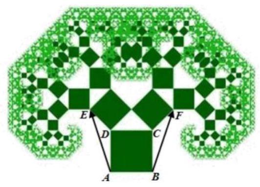 如图所示是毕达哥拉斯的生长程序:正方形上连接着等腰直角三角形,等腰直角三角形边上再连接正方形,如此继续,设初始正方形 $ A B C D$ 的边长为 $\sqrt{2}$ ,则 $AE \cdot BF=$