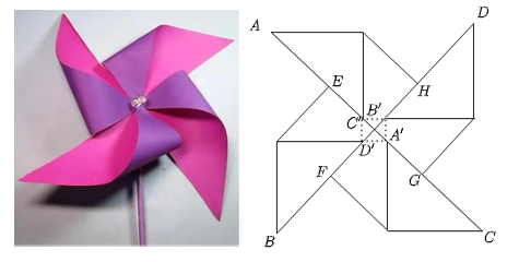 折纸发源于中国.19世纪,折纸传入欧洲,与自然科学结合在一起成为建筑学院的教具,并发展成为现代几何学的一个分支.我国传统的一种手工折纸风车(如图1)是从正方形纸片的一个直角顶点开始,沿对角线部分剪开成两个角,将其中一个角折叠使其顶点仍落在该对角线上,同样操作其余三个直角制作而成的,其平面图如图2,则( )
