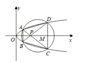 如图, 已知抛物线 $E: y^{2}=x$ 与圆 $M:(x-4)^{2}+y^{2}=r^{2}(r>0)$ 相交 于 $A 、 B 、 C 、 D$ 四个点.