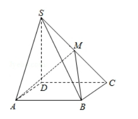 如图, 四棱雉 S- $A B C D$ 中, 底面 $A B C D$ 为矩形, $S D \perp$ 底面 $A B C D$, $A D=\sqrt{2}, D C=S D=2$, 点 $M$ 在侧棱 $S C$ 上, $\angle A B M=60^{\circ}$