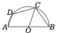 如图,四边形 ABCD 的顶点都在半圆 O 上, AB 是半圆 O 的直径,连接 $OC , \angle DAB +2 \angle ABC =180^{\circ}$ .