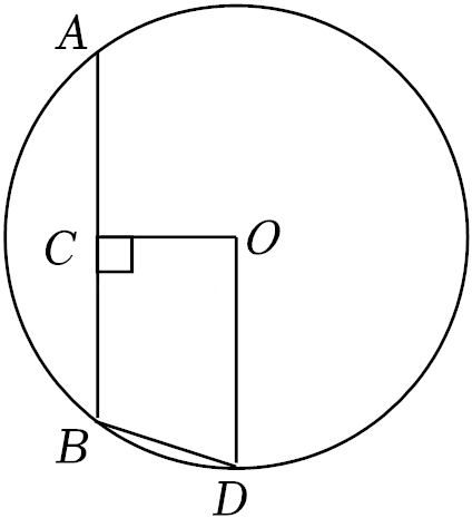 如图, $\mathrm{AB}$ 是 $\odot \mathrm{O}$ 的弦, $\mathrm{OC} \perp \mathrm{AB}$, 垂足为 $\mathrm{C}, \mathrm{OD} / / \mathrm{AB}$, $\mathrm{OC}=\frac{1}{2} \mathrm{OD}$, 则 $\angle \mathrm{ABD}$ 的度数为