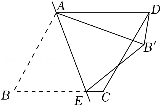 如图, 在菱形纸片 $\mathrm{ABCD}$ 中, $\mathrm{E}$ 是 $\mathrm{BC}$ 边上一点, 将 $\triangle$ $\mathrm{ABE}$ 沿直线 $\mathrm{AE}$ 翻折, 使点 $\mathrm{B}$ 落在 $\mathrm{B}^{\prime}$ 上, 连接 $\mathrm{DB}$ '. 已知 $\angle \mathrm{C}=$ $120^{\circ}, \angle \mathrm{BAE}=50^{\circ}$, 则 $\angle \mathrm{AB}$ 'D 的度数为