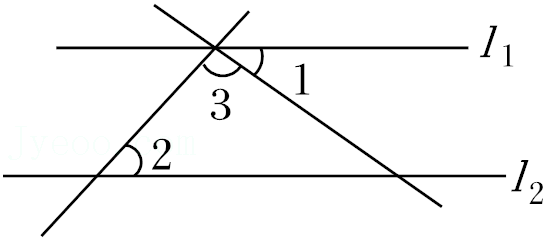 如图, $1_1 / / l_2, \angle 1=38^{\circ}, \angle 2=46^{\circ}$, 则 $\angle 3$ 的度数为