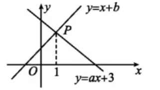 如图 F2-5,已知函数 $y=x+b$ 和 $y=a x+3$ 的图象交点为 $P$ ,则不等式 $x+b>a x+3$ 的解集为