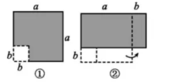 在边长为 $a$ 的正方形中挖去一个边长为 $b$ 的小正方形( $a>b$ )(如图 F2-2(1)),把余下的部分拼成一个长方形 (如图(2)),根据两个图形中阴影部分的面积相等,可以验证