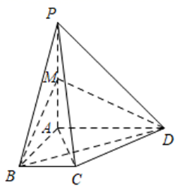 如图,在四棱锥 $P-A B C D$ 中,底面 $A B C D$ 为直角梯形,$\angle A B C=\angle B A D=\frac{\pi}{2}, A P=A D=2 B C=2 A B, P A \perp$ 底面 $A B C D, M$ 为 $P A$ 的中点,则下列叙述中正确的是( )