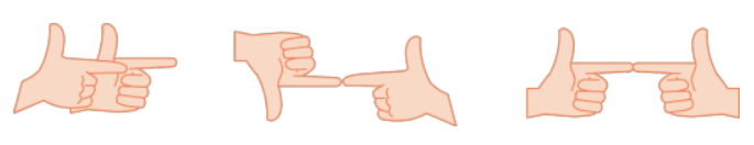 数学课上老师用双手形象的表示了“三线八角”图形,如图所示 (两大拇指代表被截直线,食指代表截线) 从左至右依次表示