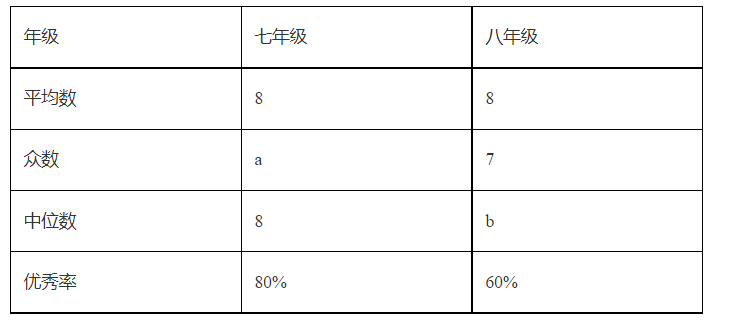 七年级抽取学生的成绩: $6,6,6,8,8,8,8,8,8 , 8 , 9 , 9 , 9 , 9 , 10$.
