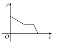 2022年2月5日,电影《长津湖》在青海剧场首映,小李一家开车去观看.最初以某一速度匀速行驶,中途停车加油耽误了十几分钟,为了按时 到达剧场,小李在不违反交通规则的前提下加快了速度,仍保持匀速行驶.在此行驶过程中,汽车离剧场的距离 $y$ (千米) 与行驶时间 $t$ (小时) 的函数关系的大致图象是