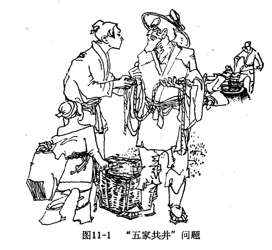 对不定方程的研究,我国古代很早就开始了,《九章算术》方程章中的第“5家共井问题”,就是突出的一例,题目大意是: