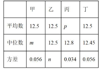 校田径队教练选出甲、乙、丙、丁四名运动员参加 100 米比赛.对这四名运动员最近10 次 100 米跑测试成绩(单位:s)的数据进行整理、描述和分析.下面给出了部分信息.