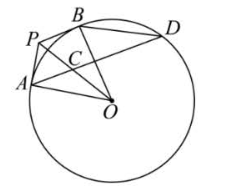 如图,过点 $P$ 作 $\odot O$ 的两条切线,切点分别为 $A, B$ ,连接 $O A, O B, O P$ ,取 $O P$ 的中点 $C$ ,连接 $A C$ 并延长,交 $\odot O$ 于点 $D$ ,连接 $B D$ .