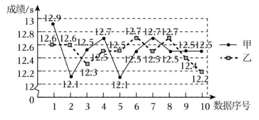 a.甲、乙两名运动员 10 次测试成绩的折线图: