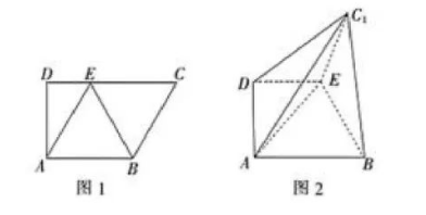 图 1 是直角梯形 $A B C D, A B / / C D, \angle D=90^{\circ}$, 四边形 $A B C E$ 是边长为 2 的菱形, 并且 $\angle$ $B C E=60^{\circ}$, 以 $B E$ 为折痕将 $\triangle B C E$ 折起, 使点$C$ 到达 $C_1$ 的位置, 且 $A C_1=\sqrt{6}$.