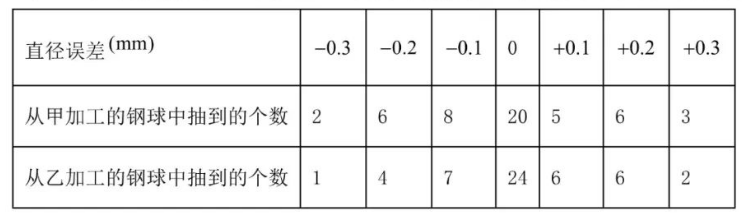 (3) 你认为甲、乙两人谁加工的钢球更符合标准? 并说明理由.