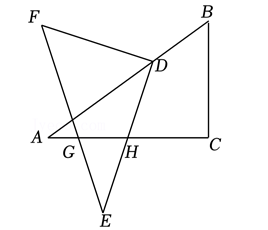 如图, 将 Rt $\triangle A B C$ 绕直角边 $A C$ 的中点 $H$ 旋转, 得到 $\triangle E F D$. 若 $\triangle E F D$ 的直角顶点 $D$ 落在 $\triangle A B C$ 的斜边 $A B$ 上, $E F$ 与 $A C$ 交于点 $G$, 且 $\triangle E G H$ 恰好是以 $G H$ 为底边的等腰三 角形, 则 $\angle A=$
