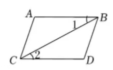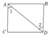 下列图形中, 由 $\angle 1=\angle 2$ 能得到 $A B / / C D$ 的是