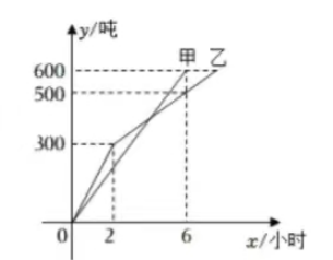 14. 甲、乙两名码头工人同时从轮船上开始卸货, 他们每人都要卸下 600 旽货物, 他们所卸 货物 $y$ (旽) 与卸货时间 $x$ (小时) 之间的关系如图所示, 则下列说法中正确的有 (填序号)