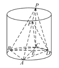 如图,四边形 $A B C D$ 是圆柱底面的内接四边形, $A C$ 是圆柱的底面直径, $P C$ 是 圆柱的母线, $E$ 是 $A C$ 与 $B D$ 的交点, $A B=A D, \angle B A D=60^{\circ}$.