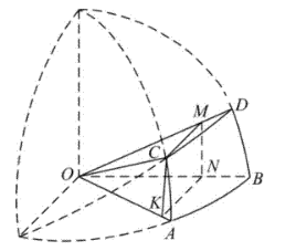 下图改编自李约瑟所著的《中国科学技术史》,用于说明元代数学家郭守敬在编制《授时 历》时所做的天文计算. 图中的 $\overparen{A B} , \overparen{A C} , \overparen{B D} , \overparen{C D}$ 都是以 $O$ 为圆心的圆弧,CMNK 是为 计算所做的矩形,其中 $M, N, K$ 分别在线段 $O D, O B, O A$ 上, $M N \perp O B, K N \perp O B$. 记 $\alpha=\angle A O B , \beta=\angle A O C , \gamma=\angle B O D , \delta=\angle C O D$ ,则