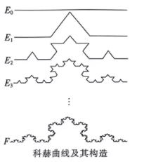 1904 年, 瑞典科学家海里格 ・冯 ・科赫引人一条曲线一一科赫曲线,曲线是这样构造的: (1)作一直线段 $E_0$; (2)将直线段 $E_0$ 三等分, 以中间三分之一线段为底作一个等边三角形, 并擦去等边三角形 的底, 得到由四条线段构成的折线图 $E_1$; (3)对 $E_1$ 的每条线段同样 用等边三角形的两边替代原线段的三分之一线段,得到折线图 $E_2 $ (4)无限重复上述过程,依次得到 $E_3, E_4, \cdots \cdots$, ,最后得到一条复杂曲线 $F$ 即称为科赫曲线,