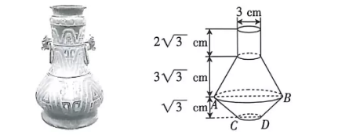 如图, 青铜器的上半部分可以近似看作圆柱体, 下半部分可以近似看作两个圆台的组合体, 已知 $A B=9 \mathrm{~cm}, C D=3 \mathrm{~cm}$, 则该青铜器的表面积为 (假设上、下底面圆是封闭的)