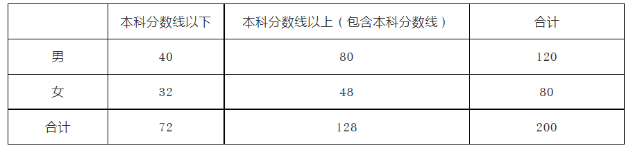 某校为了解高三年级学生的学习情况, 进行了一次高考模拟测试, 从参加测试的高三学生中随机抽取 200 名学生的成绩进行分 析, 得到如下列联表:
