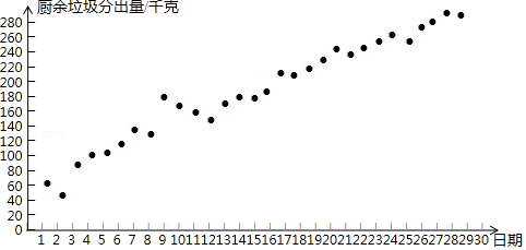 小云统计了自己所住小区5月1日至30日的厨余垃圾分出量(单位:千克),相关信息如下: