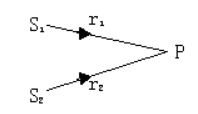 如图所示, $S_1$ 和 $S_2$ 为两相干波源。 $S_2$ 的相位比 $S_1$ 的相位超前 $\pi / 4$, 波长 $\lambda=8 \mathrm{~m}, r_1=12 \mathrm{~m}, \mathrm{r}_2=14 \mathrm{~m}, \mathrm{~S}_1$ 在 $P$ 点引起 的振动振幅为 $0.30 \mathrm{~m}, S_2$ 在 $P$ 点引起的振动振幅为 $0.20 \mathrm{~m}$, 求 $P$ 点 的合振幅
