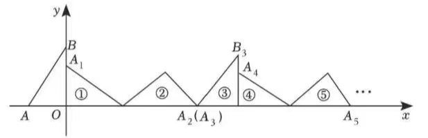 如图, 在平面直角坐标系中, 已知点 $A(-3,0), B(0,4)$, 将 Rt $\triangle A B O$ 顺着 $x$ 轴无滑动的滚动. 第一次滚动到①的位置, 点 $A$ 的对应点记作点 $A_1$; 第二次滚动到② 的位置, 点 $A_1$ 的对应点记作点 $A_2$; 第三次滚动到③的位置, 点 $A_2$ 的对应点记作点 $A_3 ; \cdots$ 依次进行下去, 发地点 $A(-3,0), A_1(0,3), A_2(9,0), \cdots$, 则点 $A_{2023}$ 的坐标为