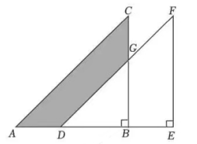 如图, 在 $\triangle A B C$ 中, $\angle A B C=90^{\circ}$, 将 $\triangle A B C$ 沿 $A B$ 方向平移 $A D$ 的长度得到 $\triangle D F F$, 已知 $E F=8, B E=3, C G=3$. 则图中阴影部分的面积