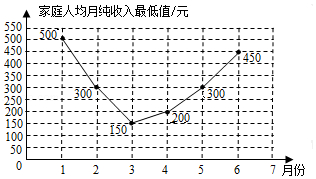 (3) 2020 年初, 由于新冠疫情, 农民收入受到严重影响, 上半年当地农民家庭人均月纯 收入的最低值变化情况如图 2 的折线图所示. 为确保当地农民在 2020 年全面脱贫, 当地 政府积极筹集资金, 引进某科研机构的扶贫专项项目. 据预测, 随着该项目的实施, 当 地农民自 2020 年 6 月开始, 以后每月家庭人均月纯收入都将比上一个月增加 170 元.