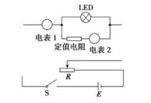 (3)写出测量LED灯正常工作时的电阻表达式 $R_x=$ ( ) (用已知量和测量 量表示), 调节滑动变阻器滑片的位置, 当表达式中的 ( ) (填字母)达到 ( ) ,记下另一电表的读数代入表达式, 其结果即为LED灯正常工作时的电阻.
