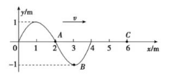 一列简谐横波沿 $x$ 轴正方向传播, $t=0$ 时刻的波形如图所示, 介质中 质点 $A, B 、 C$ 分别位于 $x_1=2 \mathrm{~m} 、 x_2=3 \mathrm{~m} 、 x_3=6 \mathrm{~m}$ 处. 当 $t=9$