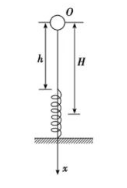 一根轻弹簧, 下端固定在水平地面上, 一个质量为 $m$ 的小球(可视为质点), 从距 弹簧上端 $h$ 处自由下落并压缩弹簧, 如图所示. 若以小球下落点为 $x$ 轴正方向起点 , 设小球从开始下落到压缩弹簧至最大时位置为 $\boldsymbol{H}$, 不计任何阻力, 弹簧均处于 弹性限度内; 小球下落过程中加速度 $a$, 速度 $v$, 弹簧的弹力 $F$, 弹性势能 $E_{\mathrm{p}}$ 变化的 图象可能正确的是
