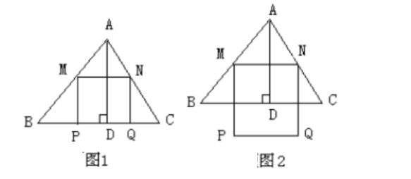 $M N // B C$, 以 $\mathrm{MN}$ 为边向下作正方形 $M P Q N$, 设其边长为 $\mathrm{x}$, 正方形 $M P Q N$ 与 $\triangle A B C$ 公共部分的
